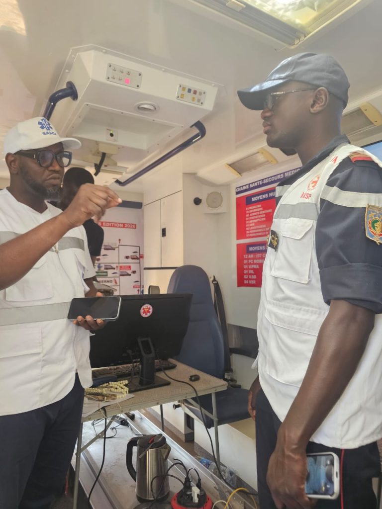 Au cours de cette visite, le Directeur s’est particulièrement intéressé à l’organisation opérationnelle du dispositif de risposte, à la coordination avec les équipes de la DRS de kolda et de la BNSP. Un accent particulier a été mis sur l’utilisation de la plateforme OTIPS de la BNSP via une connexion satellitaire Starlink, qui permet le suivi en temps réel des interventions, la centralisation des données sanitaires et la remontée rapide des informations vers le poste de commande et vers les tutelles de la BNSP et du MSHP